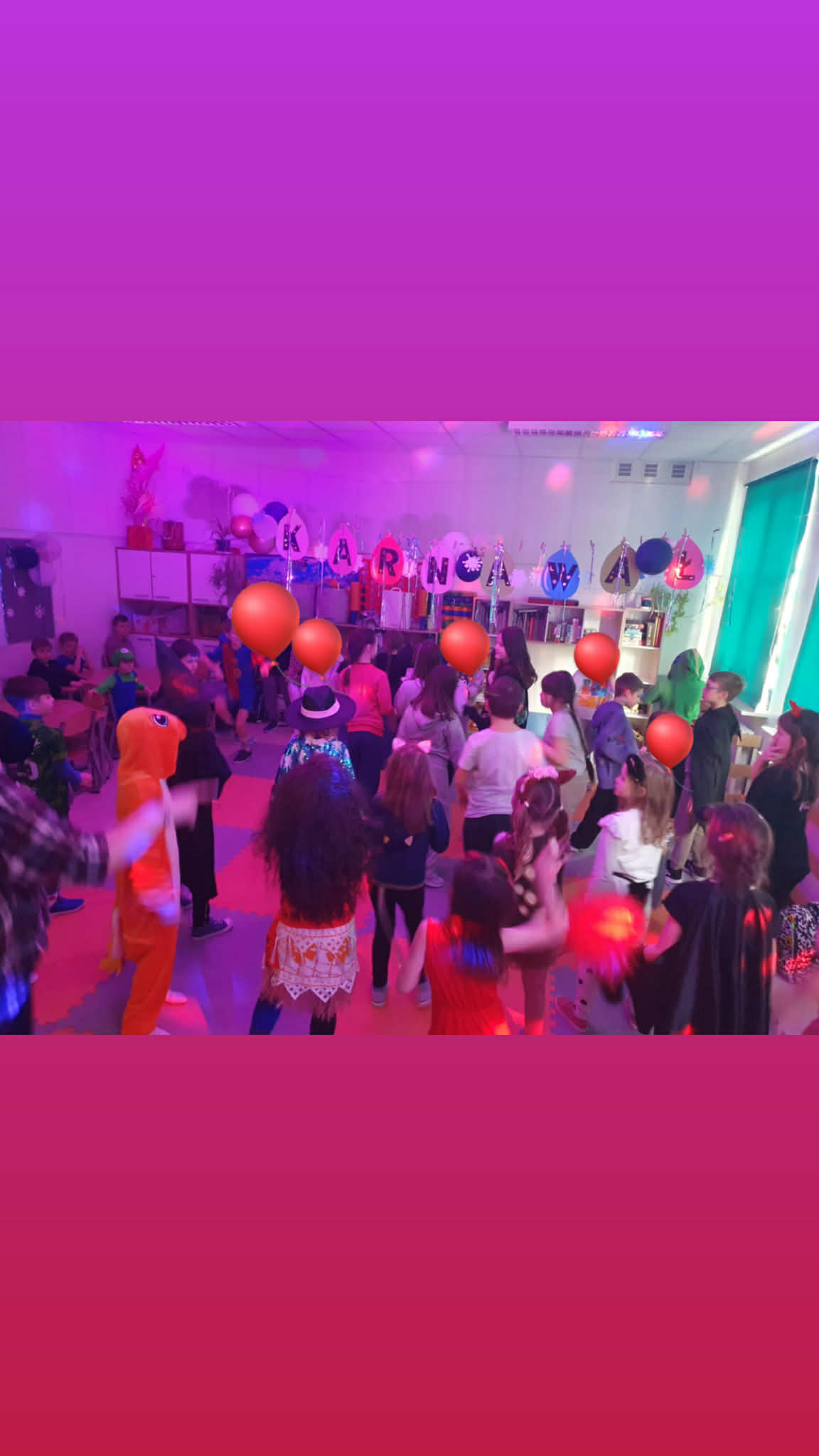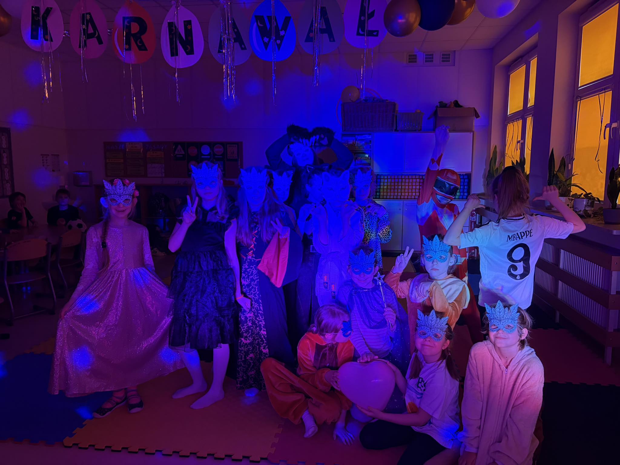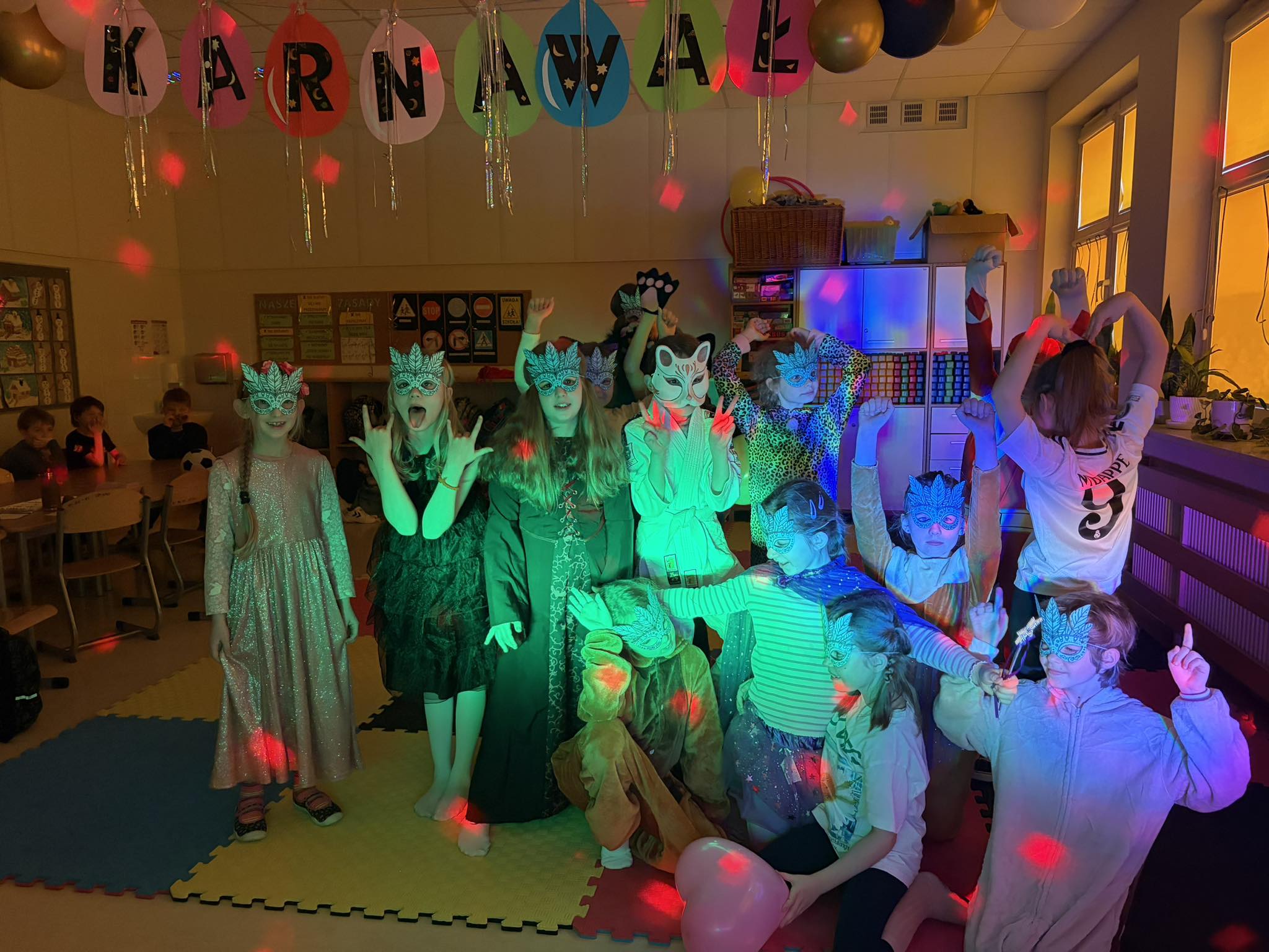 Za nami bale karnawałowe w świetlicy. Sale wypełniły się kolorowymi dekoracjami i balonami, tworząc radosną, wyjątkową atmosferę. Dzieci w pomysłowych przebraniach brały udział w tanecznych harcach – zarówno grupowych, jak i indywidualnych – co sprzyjało integracji grupy świetlicowej i wspólnej zabawie.