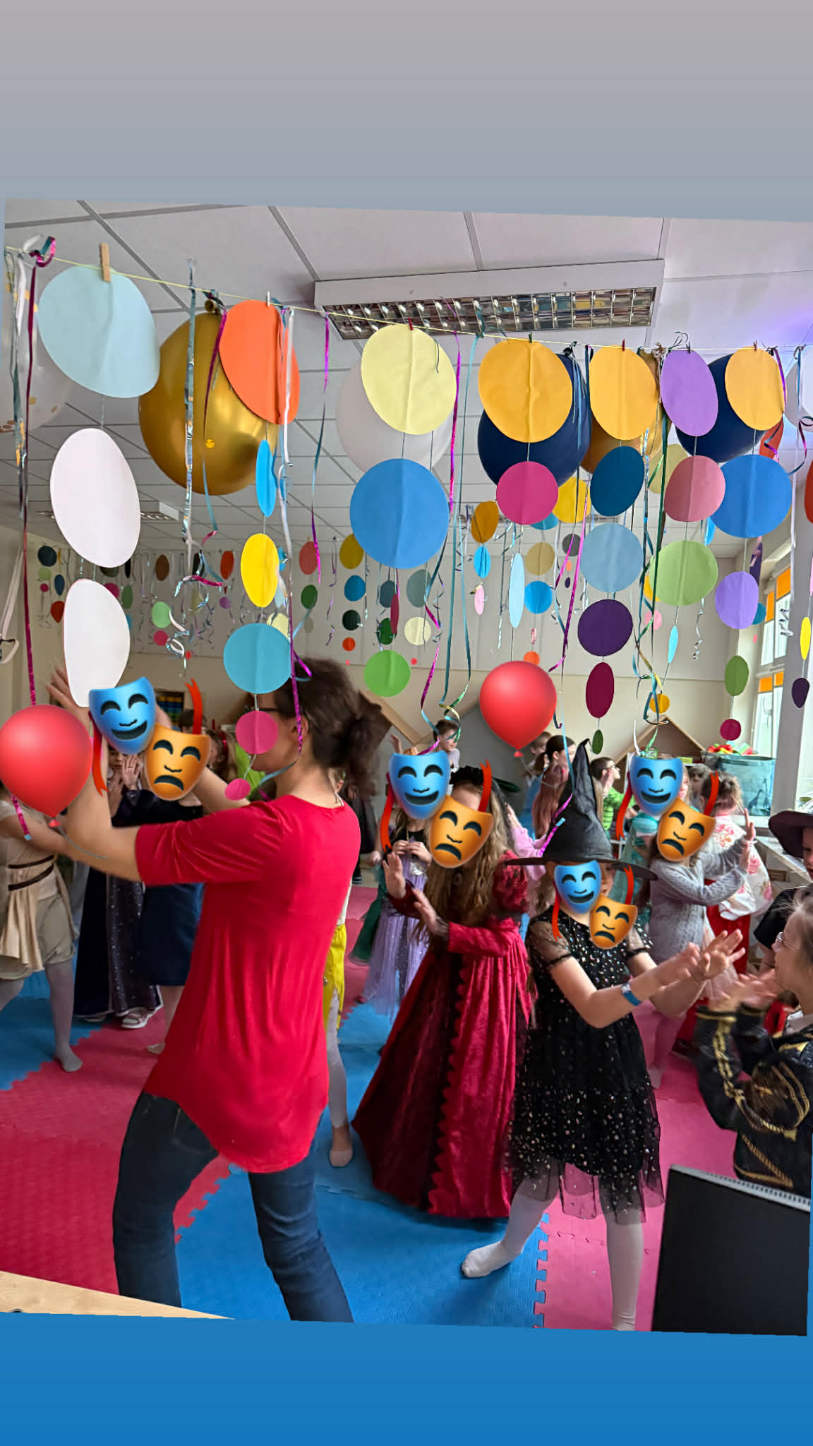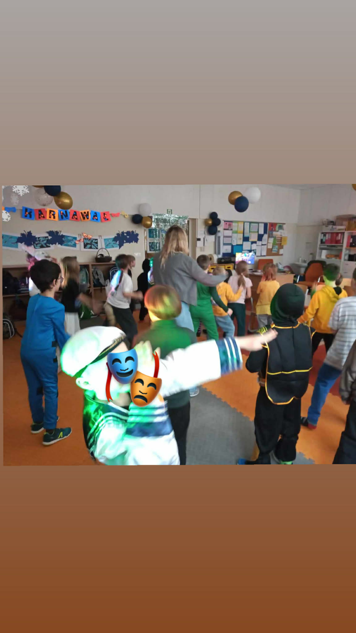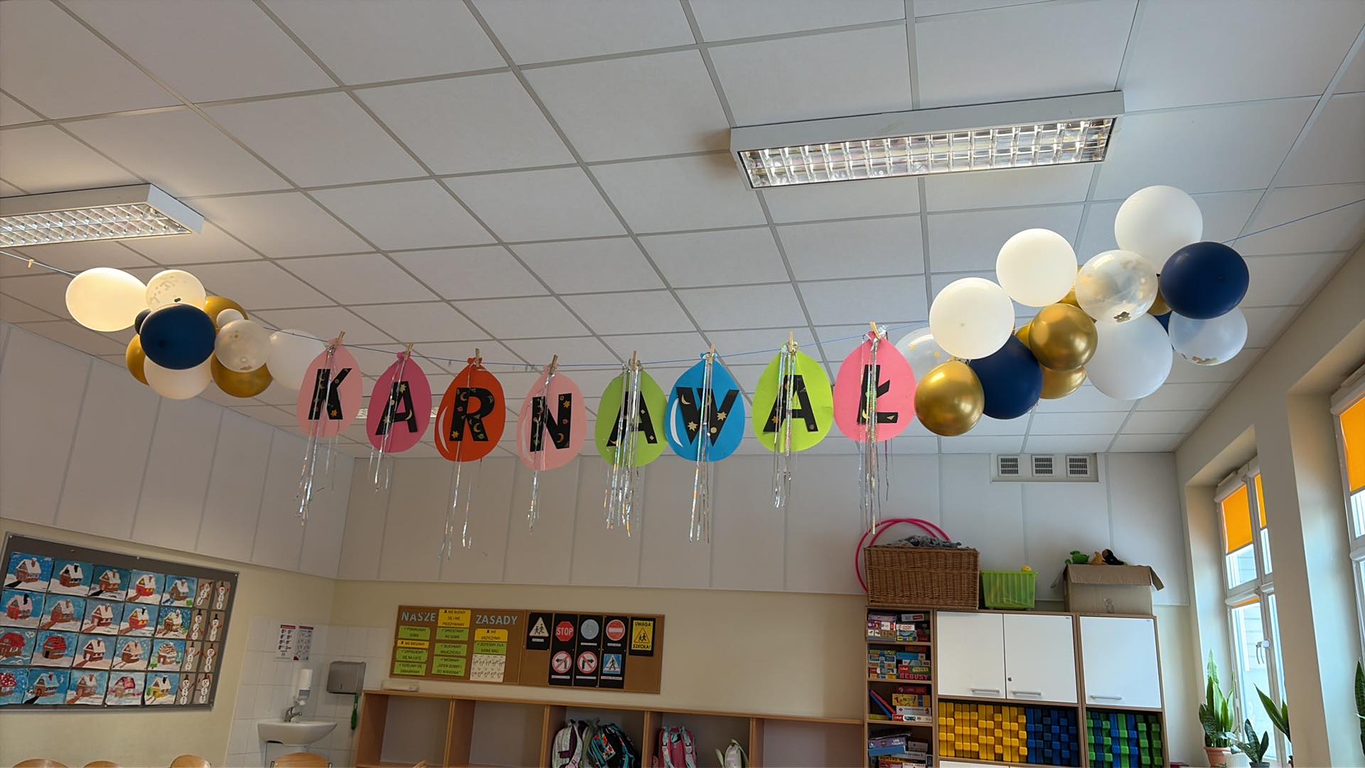 Za nami bale karnawałowe w świetlicy. Sale wypełniły się kolorowymi dekoracjami i balonami, tworząc radosną, wyjątkową atmosferę. Dzieci w pomysłowych przebraniach brały udział w tanecznych harcach – zarówno grupowych, jak i indywidualnych – co sprzyjało integracji grupy świetlicowej i wspólnej zabawie.