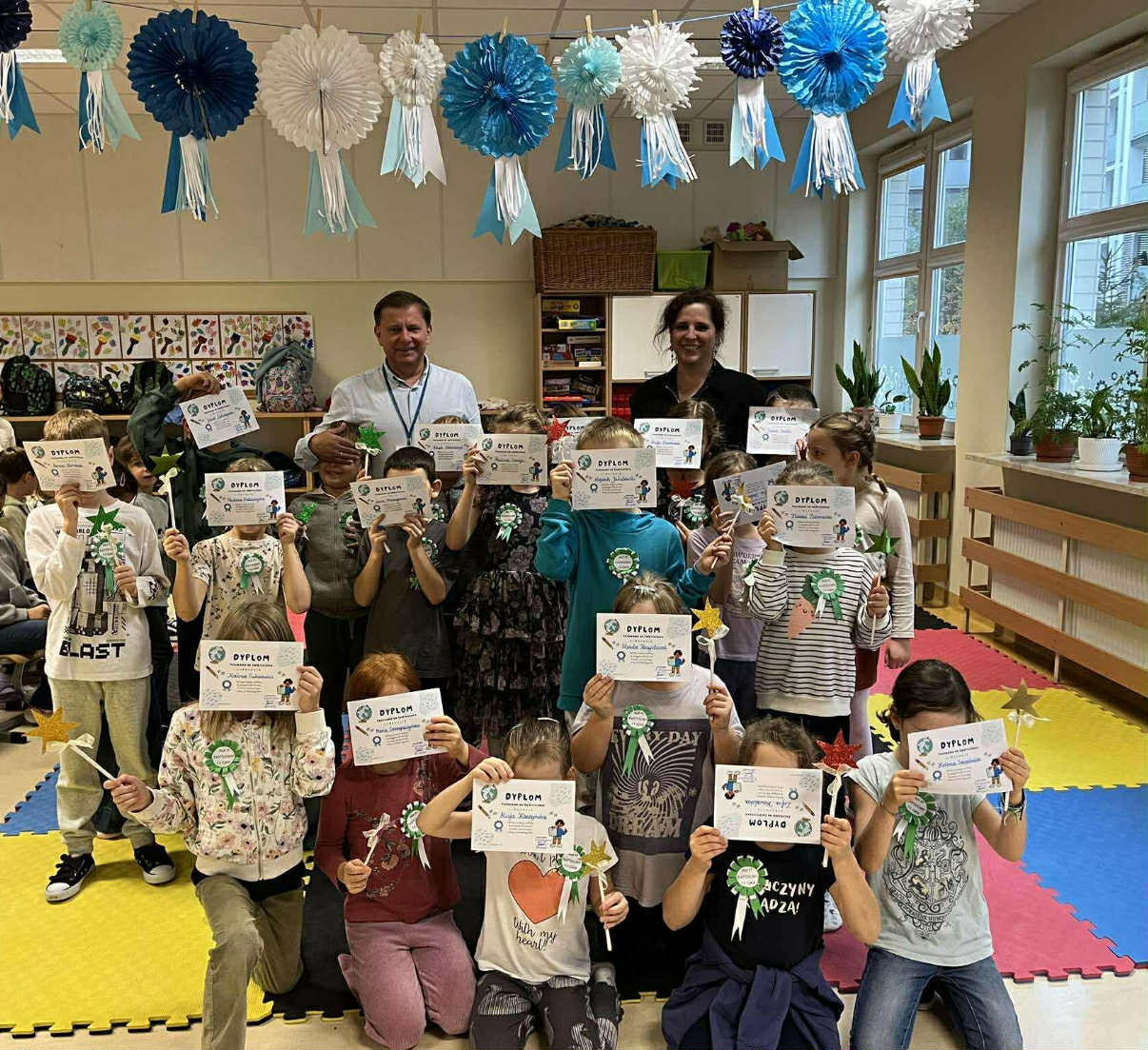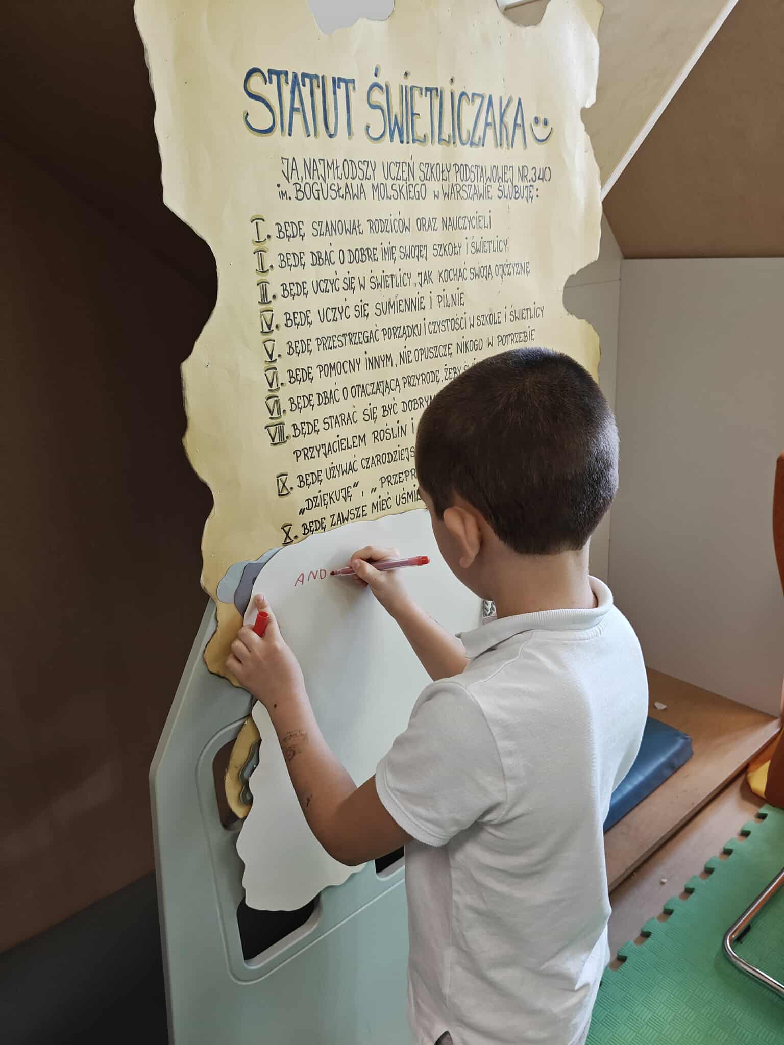 W październiku w naszej szkole odbyło się uroczyste „Pasowanie na Świetliczaka” dla uczniów klas pierwszych. W trakcie uroczystości dzieci uczestniczyły w zabawach, wykazały się pomysłowością, znajomością zasad obowiązujących w świetlicy i umiejętnością współpracy z innymi. Na koniec wychowawcy świetlicy dokonali symbolicznego pasowania. Każdy uczeń otrzymał pamiątkowy dyplom i drobny upominek.