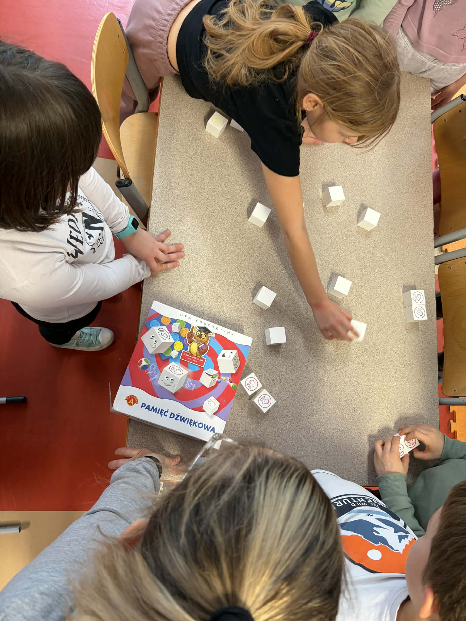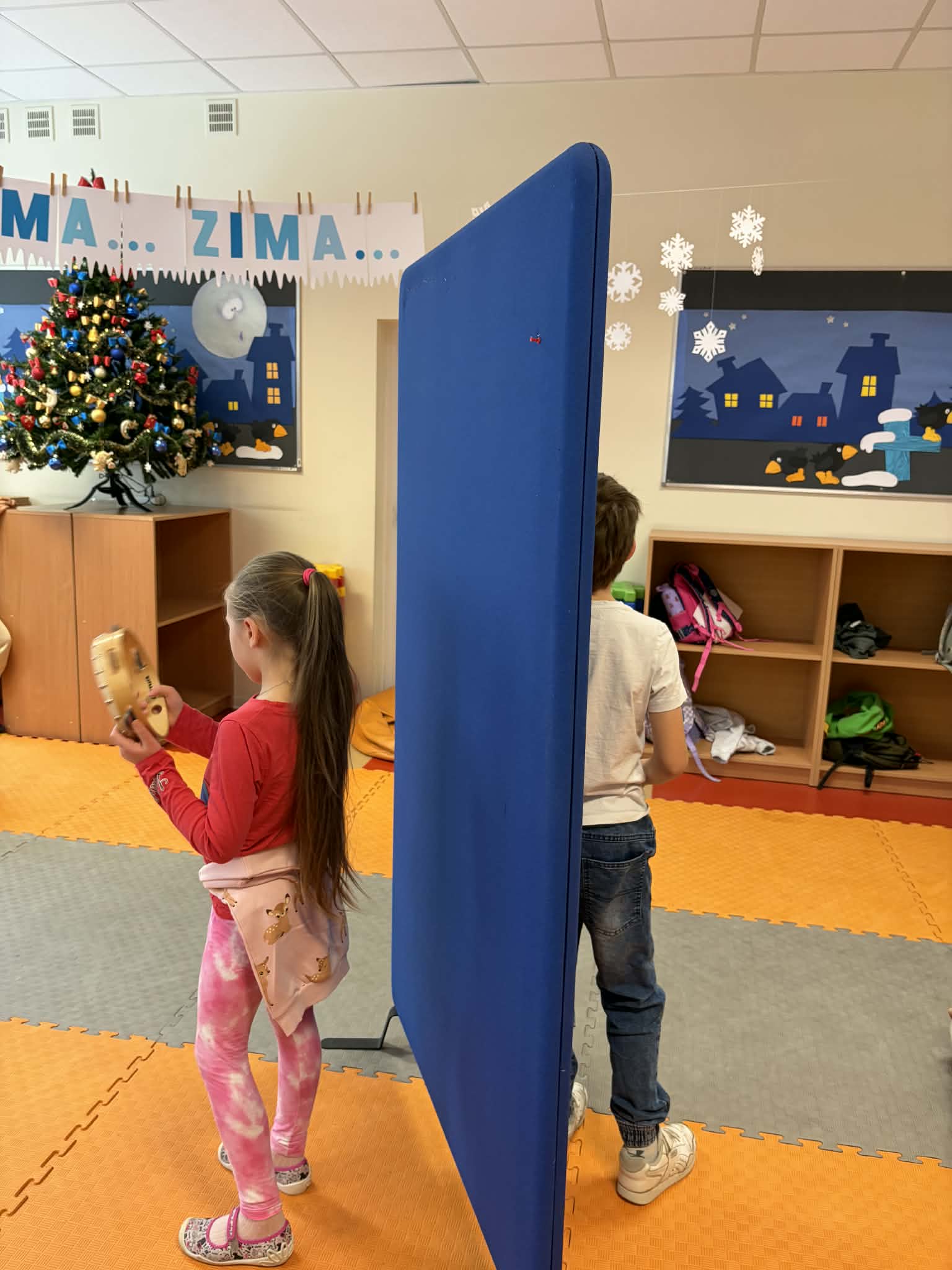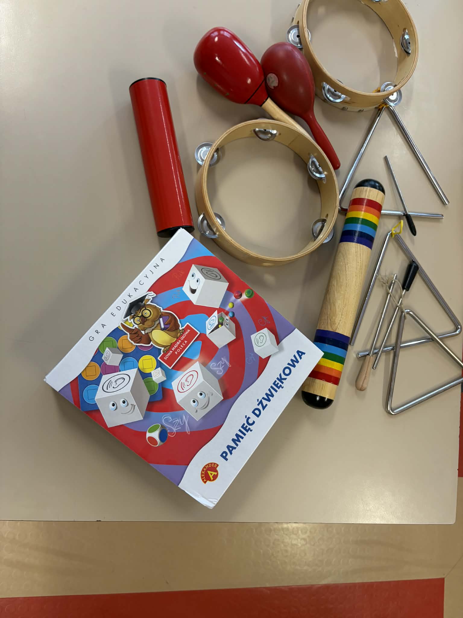 W świetlicy szkolnej odbył się kolejny etap projektu edukacyjnego „Gramy zmysłami” – słuch. Podczas zajęć wykorzystano różnorodne instrumenty muzyczne oraz memory dźwiękowe. Dzieci grały w memory dźwiękowe, a także brały udział w zabawie polegającej na rozpoznawaniu dźwięków – jedno dziecko grało na instrumencie, a drugie uważnie wsłuchiwało się i próbowało odgadnąć, jaki to dźwięk. Zajęcia rozwijały koncentrację, pamięć słuchową oraz wrażliwość na dźwięki.
