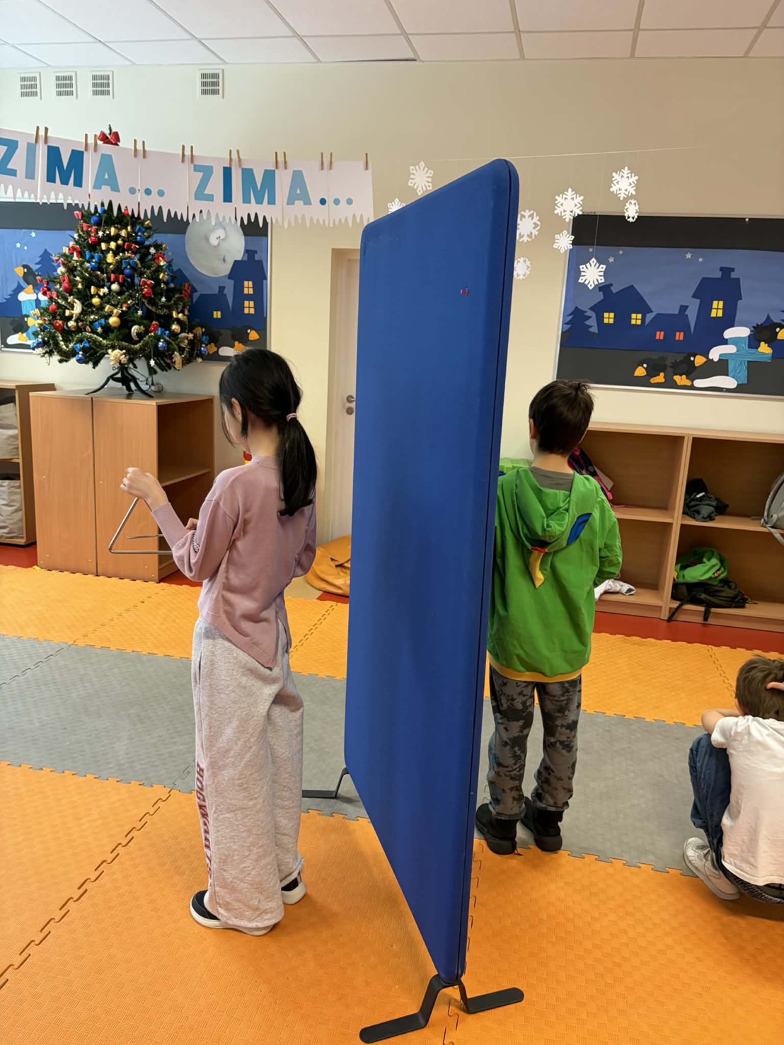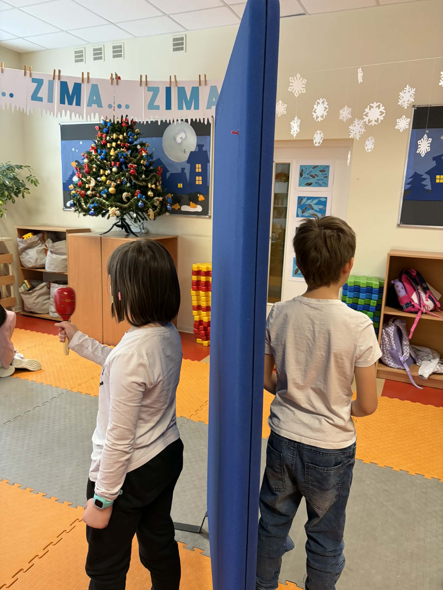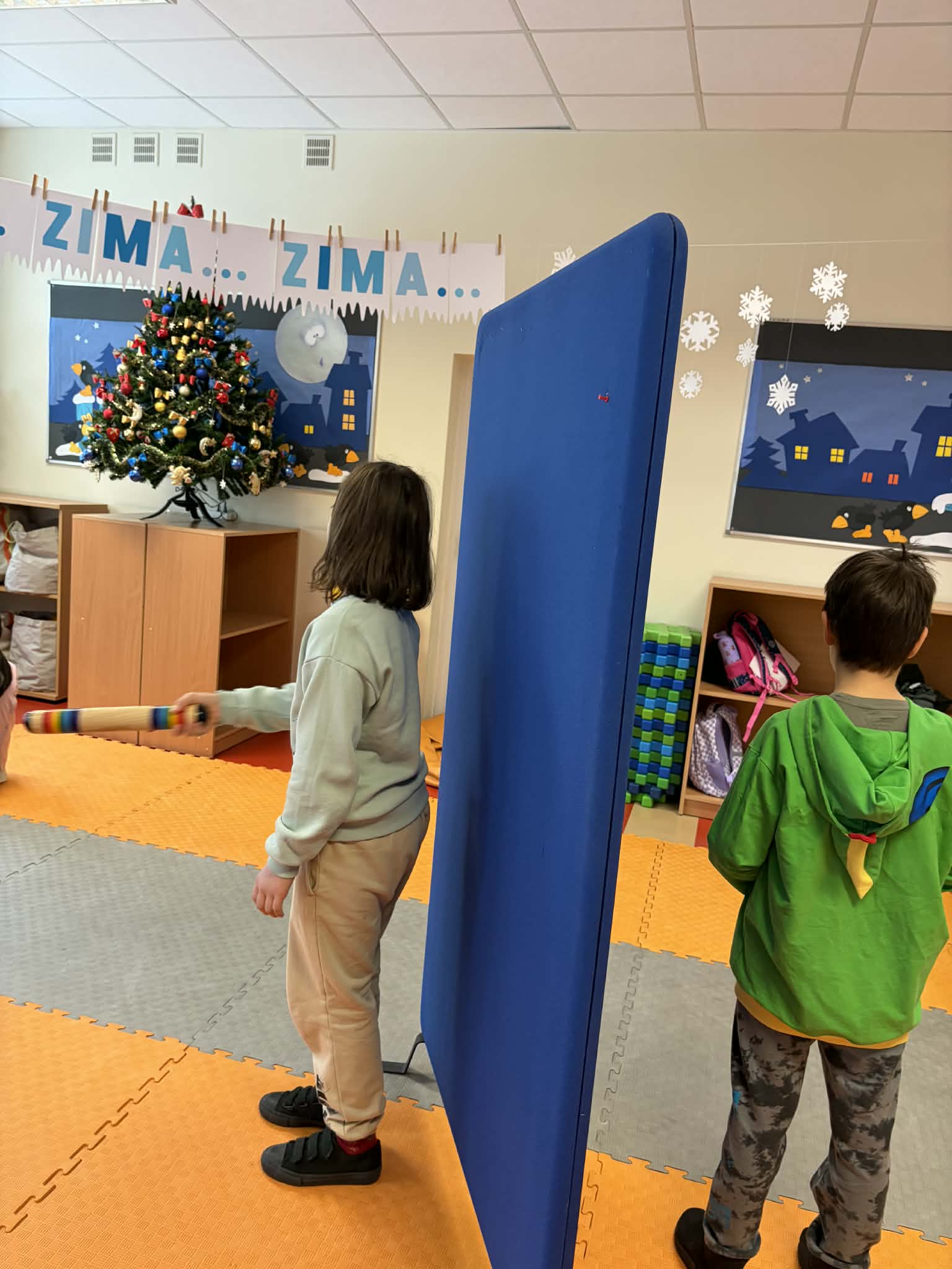 W świetlicy szkolnej odbył się kolejny etap projektu edukacyjnego „Gramy zmysłami” – słuch. Podczas zajęć wykorzystano różnorodne instrumenty muzyczne oraz memory dźwiękowe. Dzieci grały w memory dźwiękowe, a także brały udział w zabawie polegającej na rozpoznawaniu dźwięków – jedno dziecko grało na instrumencie, a drugie uważnie wsłuchiwało się i próbowało odgadnąć, jaki to dźwięk. Zajęcia rozwijały koncentrację, pamięć słuchową oraz wrażliwość na dźwięki.