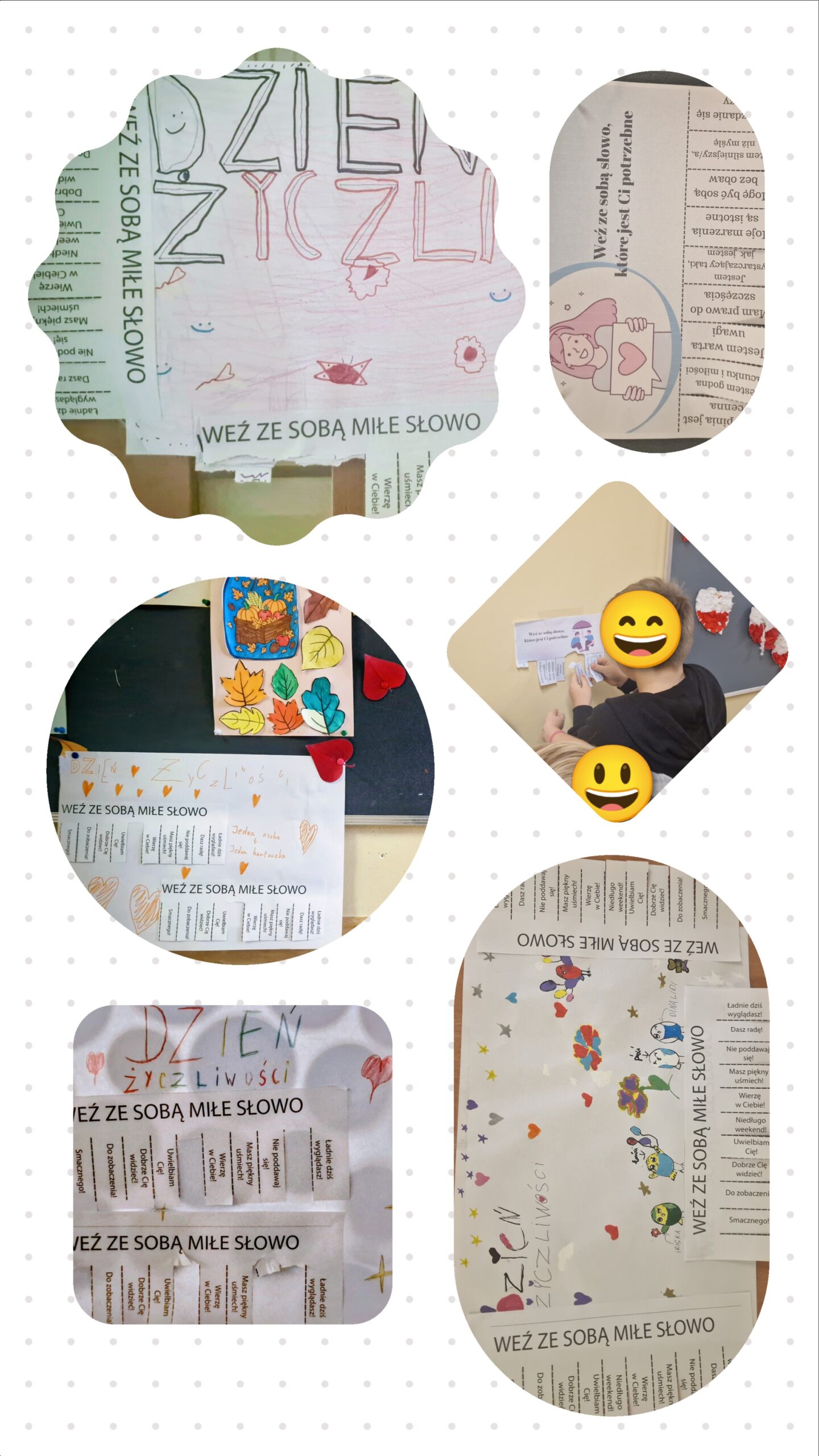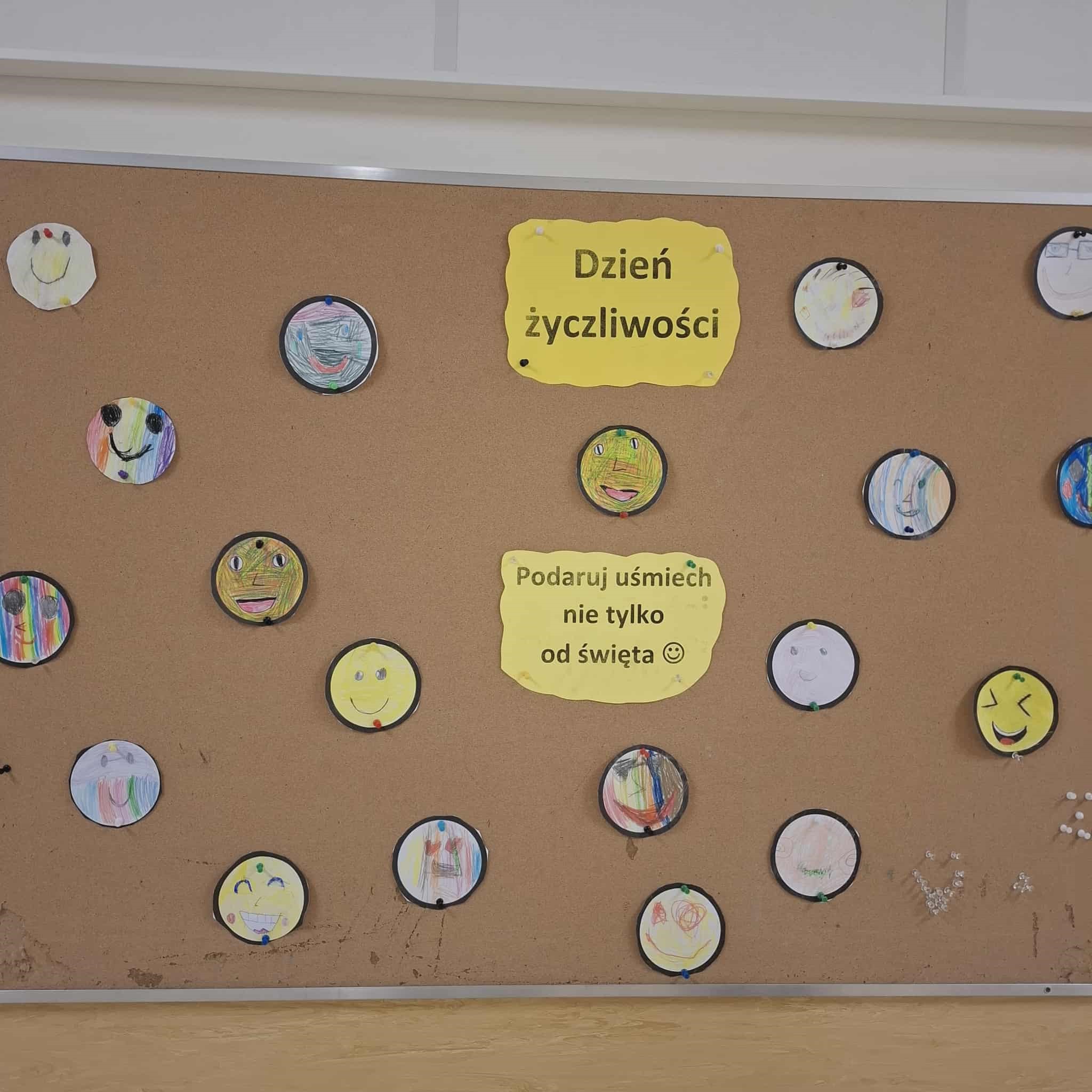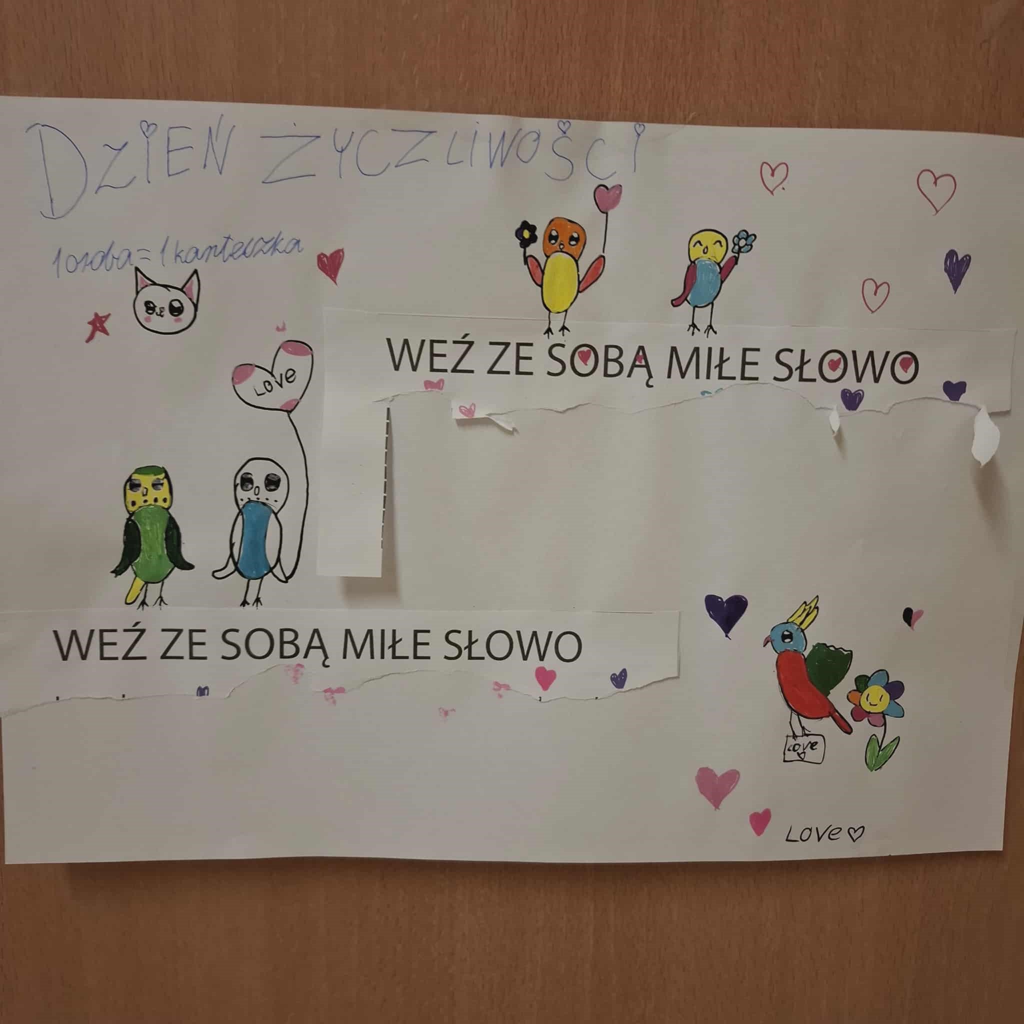 Mały Samorząd Uczniowski włączył się w tę inicjatywę i przygotował zabawę dla uczniów klas 1-3. Korytarze ozdobiły kolorowe karteczki z życzliwymi słowami, komplementami i dobrymi myślami, które uczniowie zabierali ze sobą, wymieniali się nimi, obdarowywali nimi koleżanki i kolegów. Prosta zabawa sprawiła wiele radości i przypomniała wszystkim, jak ważne są życzliwość, uśmiech i dobre słowo w codziennych relacjach.